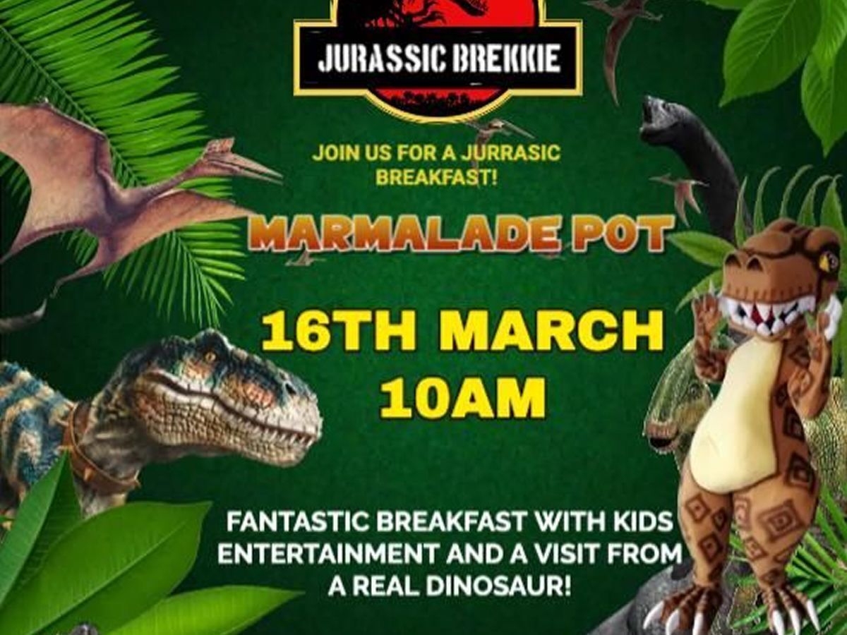 Start your day with a prehistoric twist at The Marmalade Pot’s Jurassic Breakfast! Enjoy a delicious meal while the restaurant transforms into a dinosaur-themed adventure, complete with kids’ entertainment and a special guest—an almost real-life dinosaur!