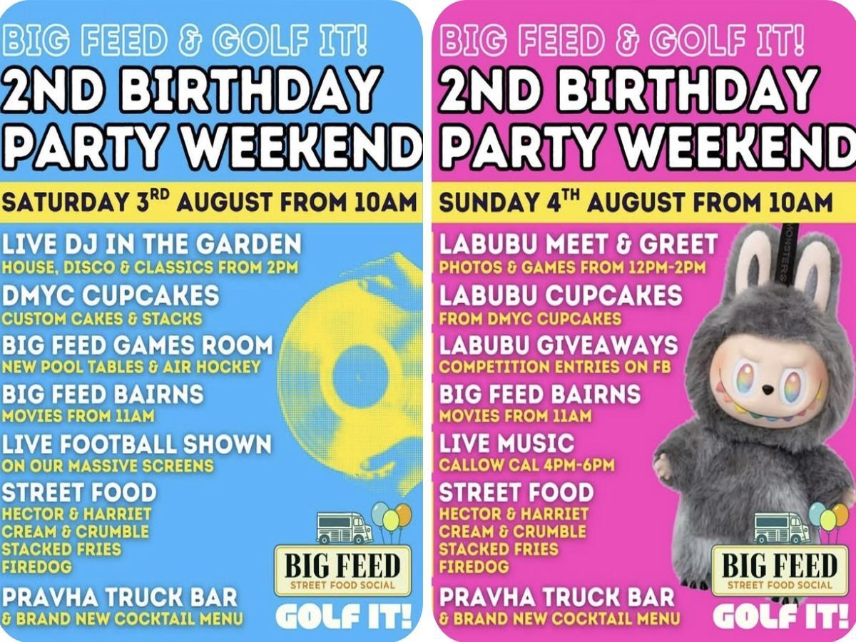 Big Feed is turning 2 and throwing one heck of a party at Golf It! Expect DJs, street food, face painting, crafts, cupcakes, Labubu meet & greets, and more. Bonus: you can pop over for a round of crazy golf or hit the driving range while you're at it!